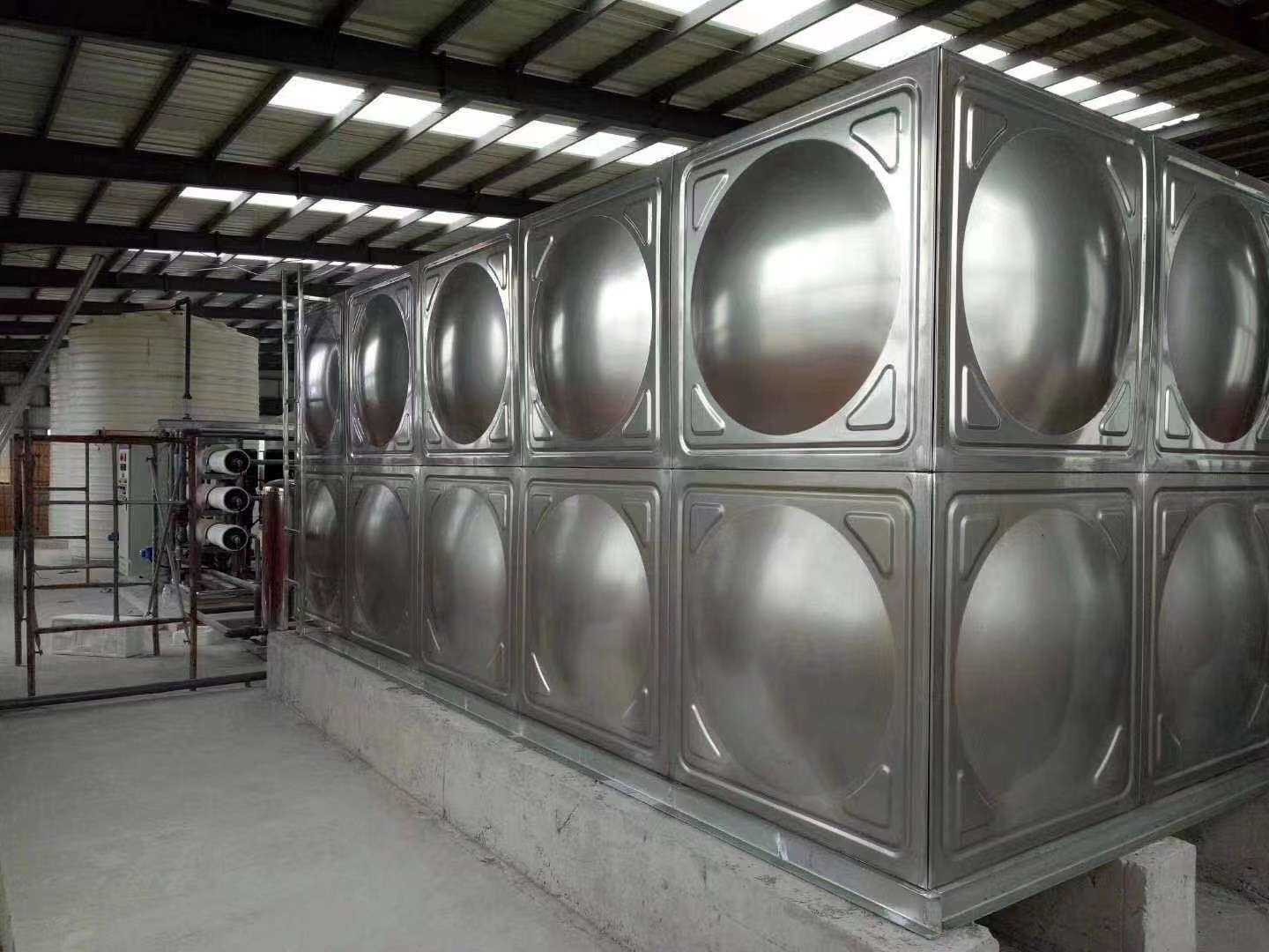 2、不銹鋼沖壓板:通過(guò)模壓成型,表面凸起狀,一部分為了保障水箱側(cè)面不隨著時(shí)間的增加而變形,一部分為了承壓能力與美觀程度。